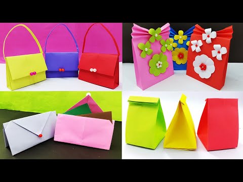 4 Amazing Paper Bag Making | How To Make Paper Bags | Origami Gift Bags | DIY School Crafts
